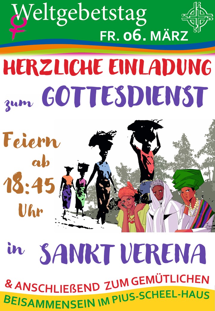 Und wir sind eingeladen, die Welt mit ihren Augen zu sehen, ihnen zuzuhören, uns auf sie einzulassen. D.h., wir feiern – am Freitag, den 06. März, in der St. Verena Kirche Bad Wurzach – mit Nigeria Gottesdienst und beginnen damit um 18:45 Uhr. Anschließend gibt es die Möglichkeit zum gemütlichen Beisammensein im Pius-Scheel-Haus, mit Leckereien und Getränken.